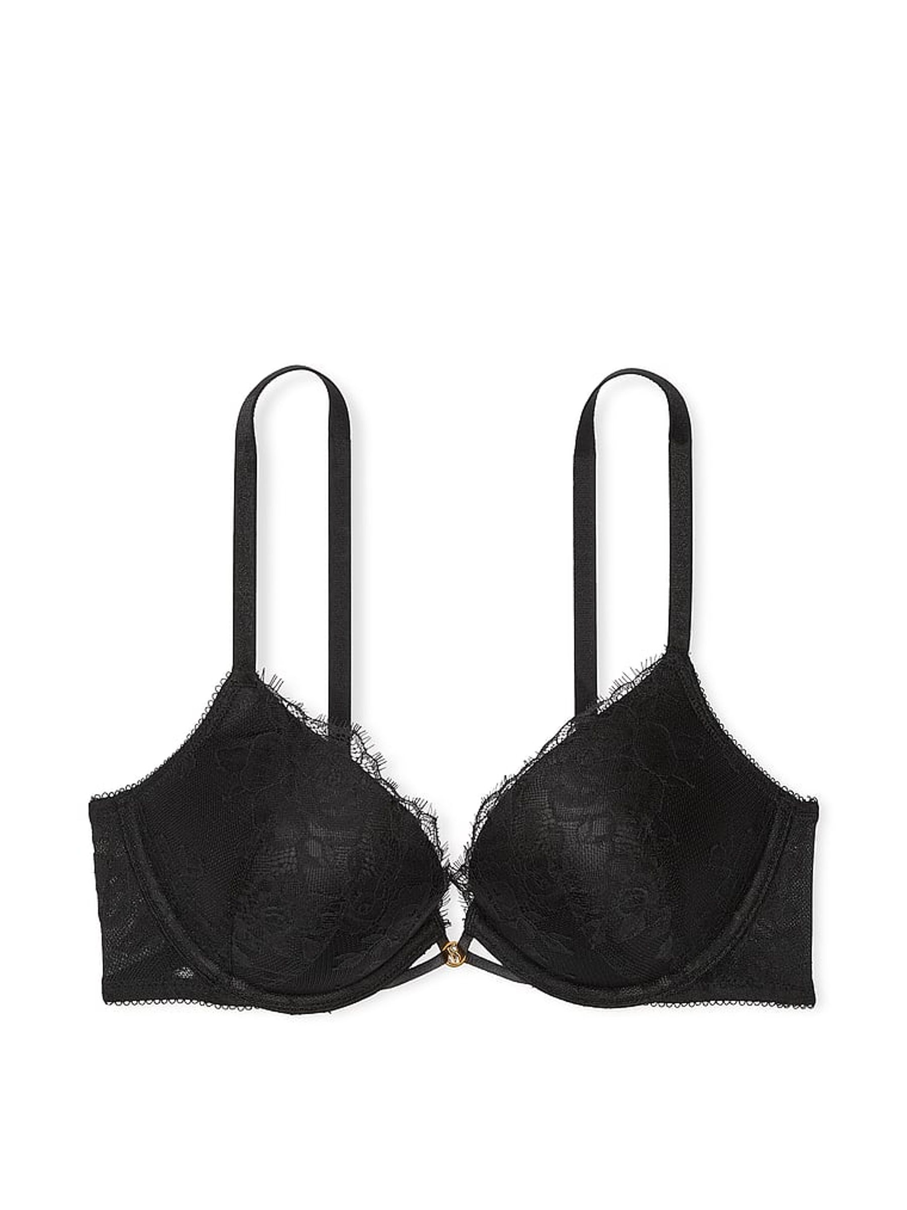 Black Monogram Push Up Shine Strap Bra