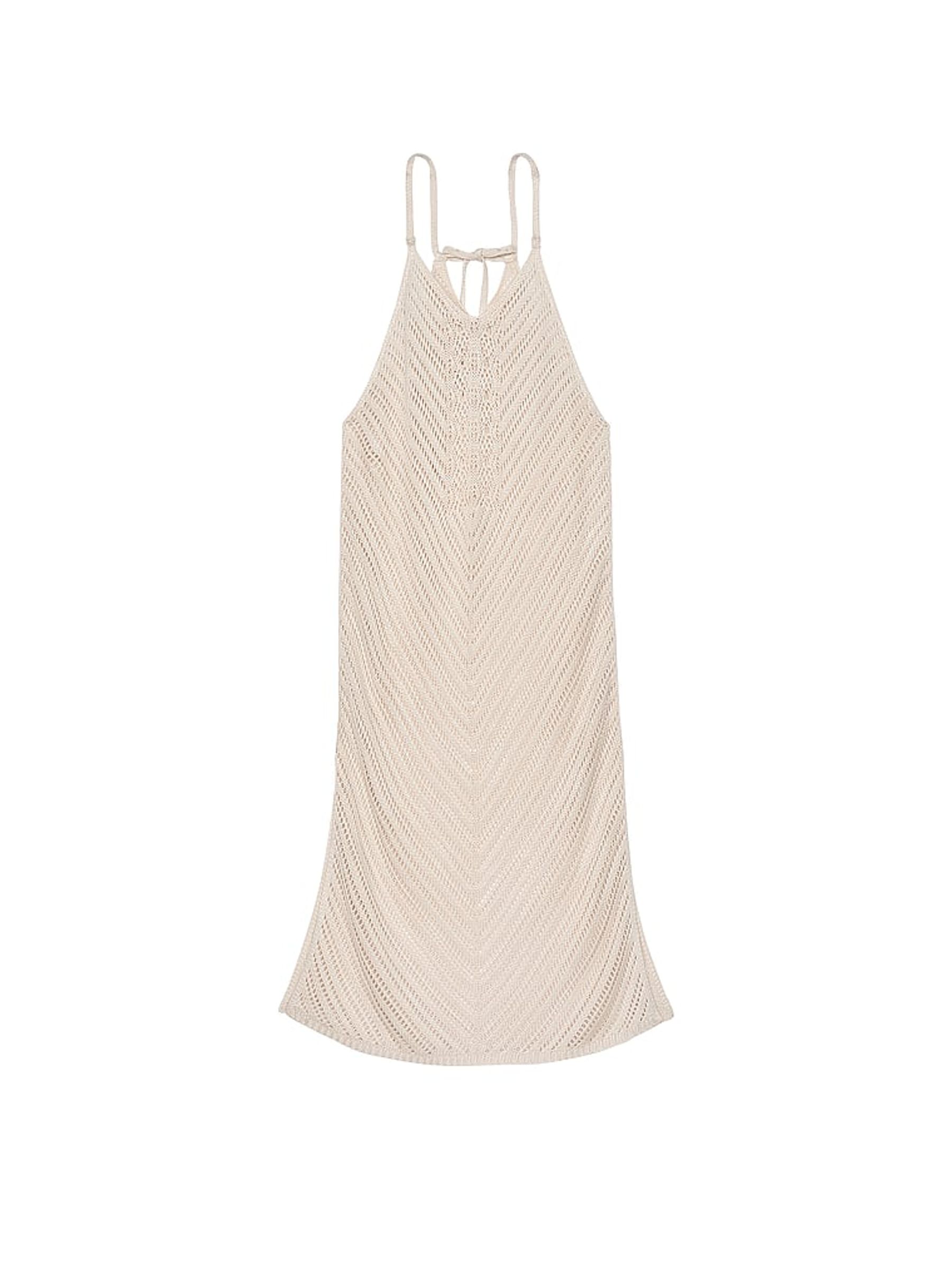 Linen Nude Crochet Cover Up Midi Dress